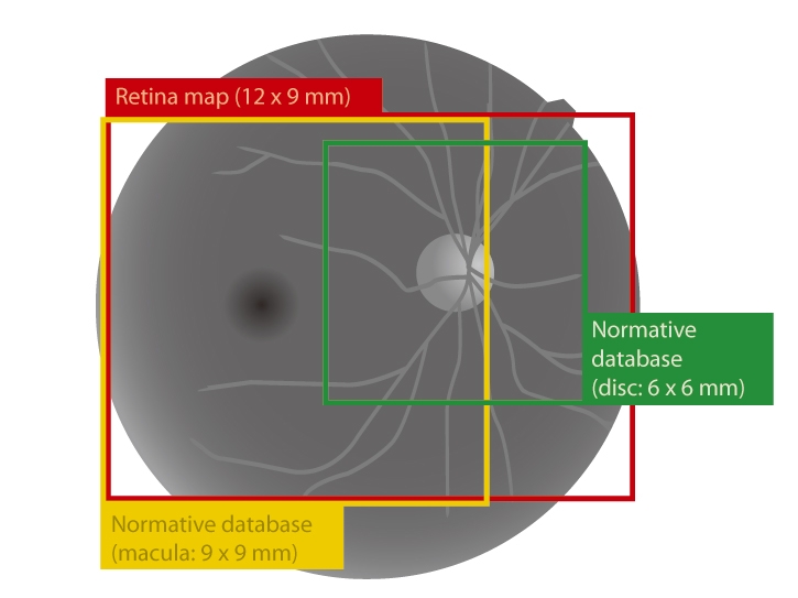 Wide area normative database (macula: 9 x 9 mm, disc: 6 x 6 mm)
