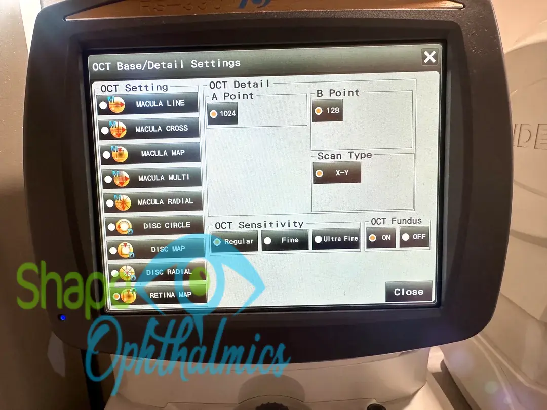 | A 12 × 9 mm wide-area image can be acquired. The retina map captures both the macula and disc in a single shot.