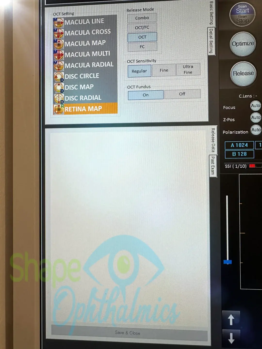 - Fundus image acquisition with macula and disc capture in one image on OCT